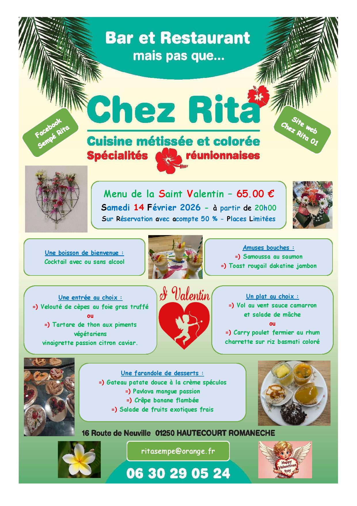 =) Sur place au bar restaurant « Chez Rita » sur réservation