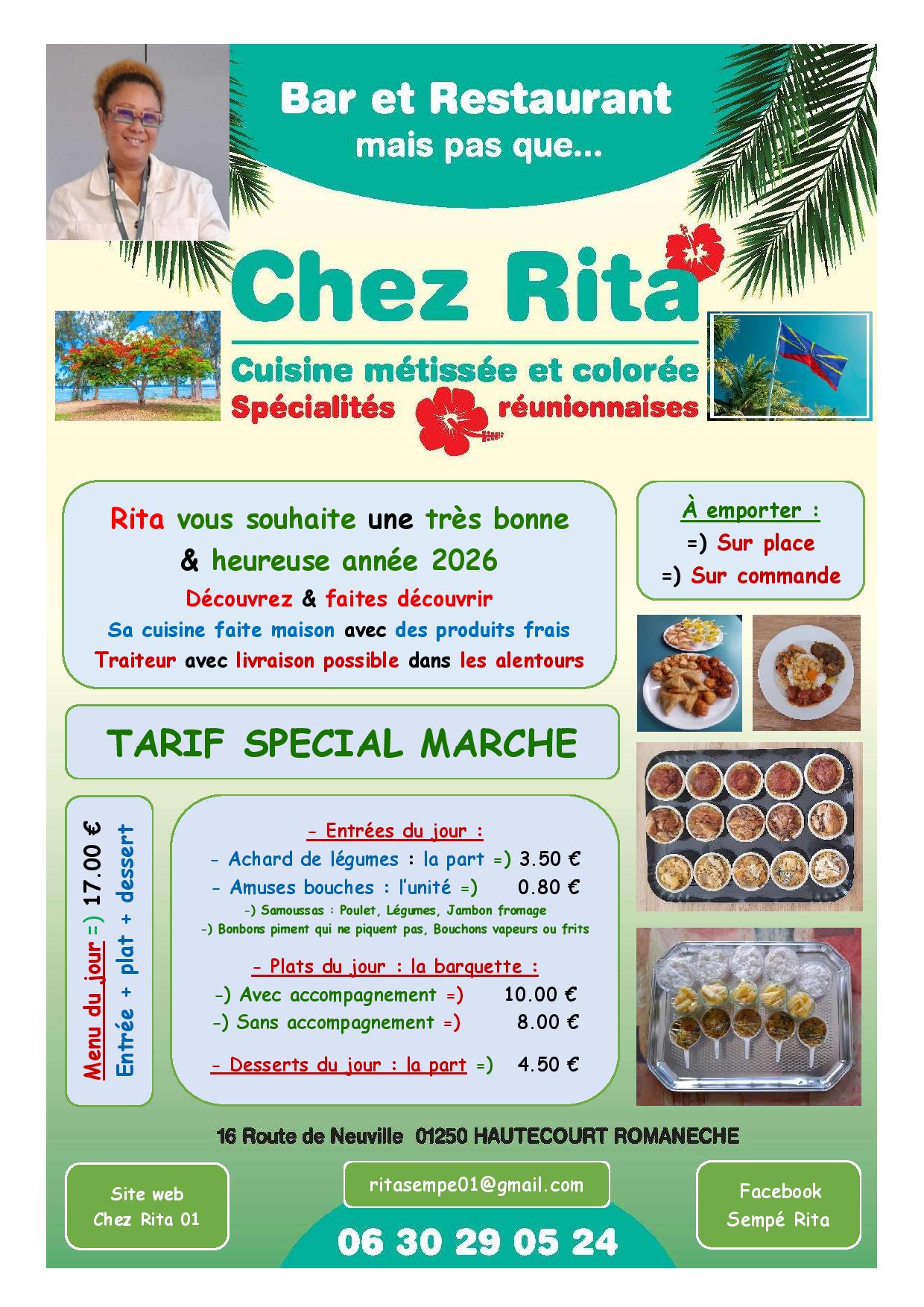 Rita vous propose des spécialités réunionnaises faites maison avec des produits frais.